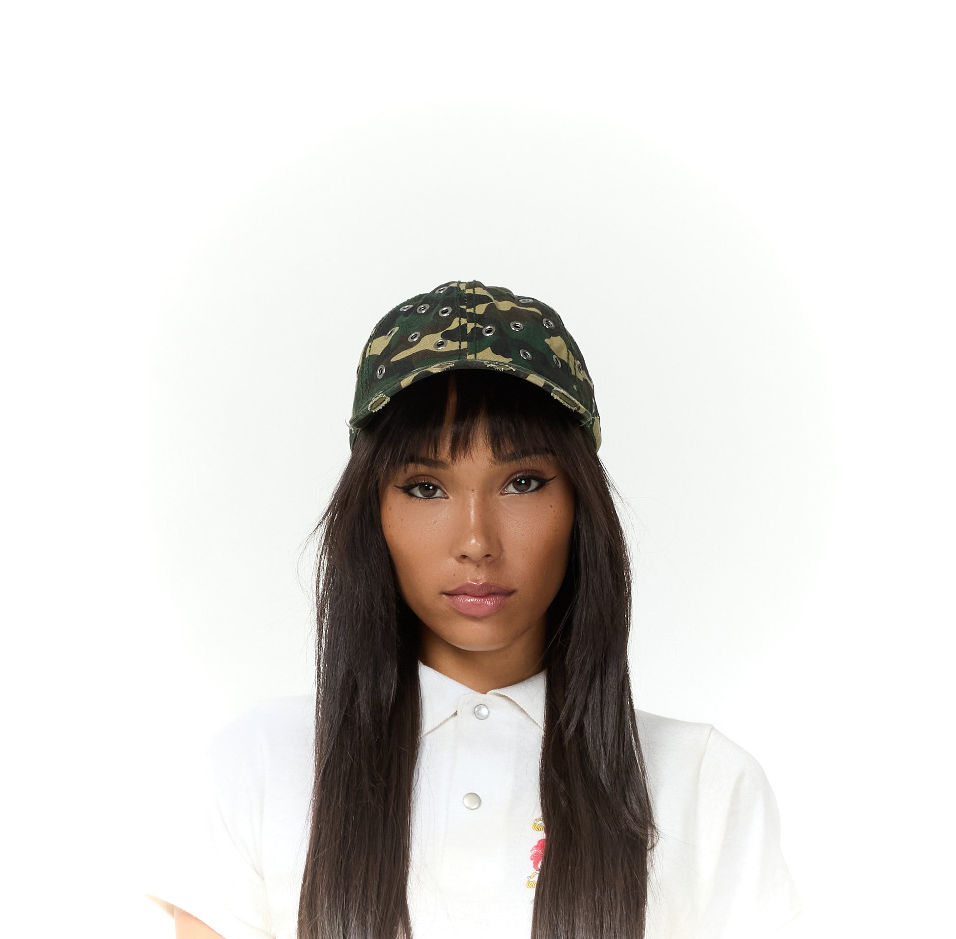 HAND STUDDED WITH METAL THRASHED ARMY STYLE CAMO HAT